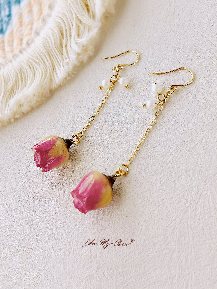 Pressed Flower Earrings - Pearl Rose Bud