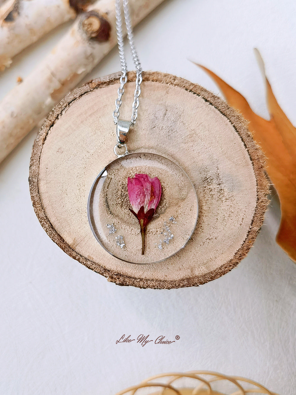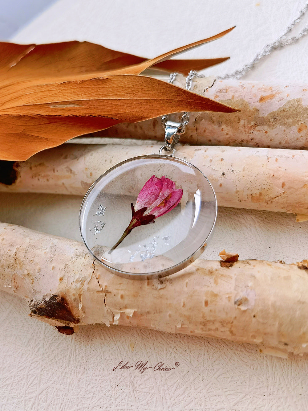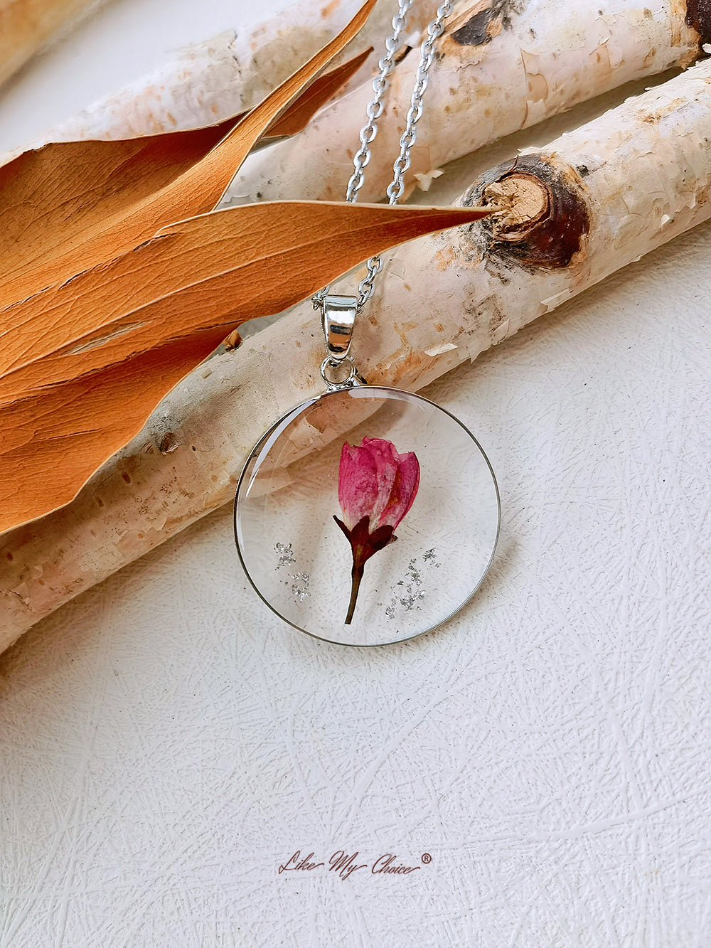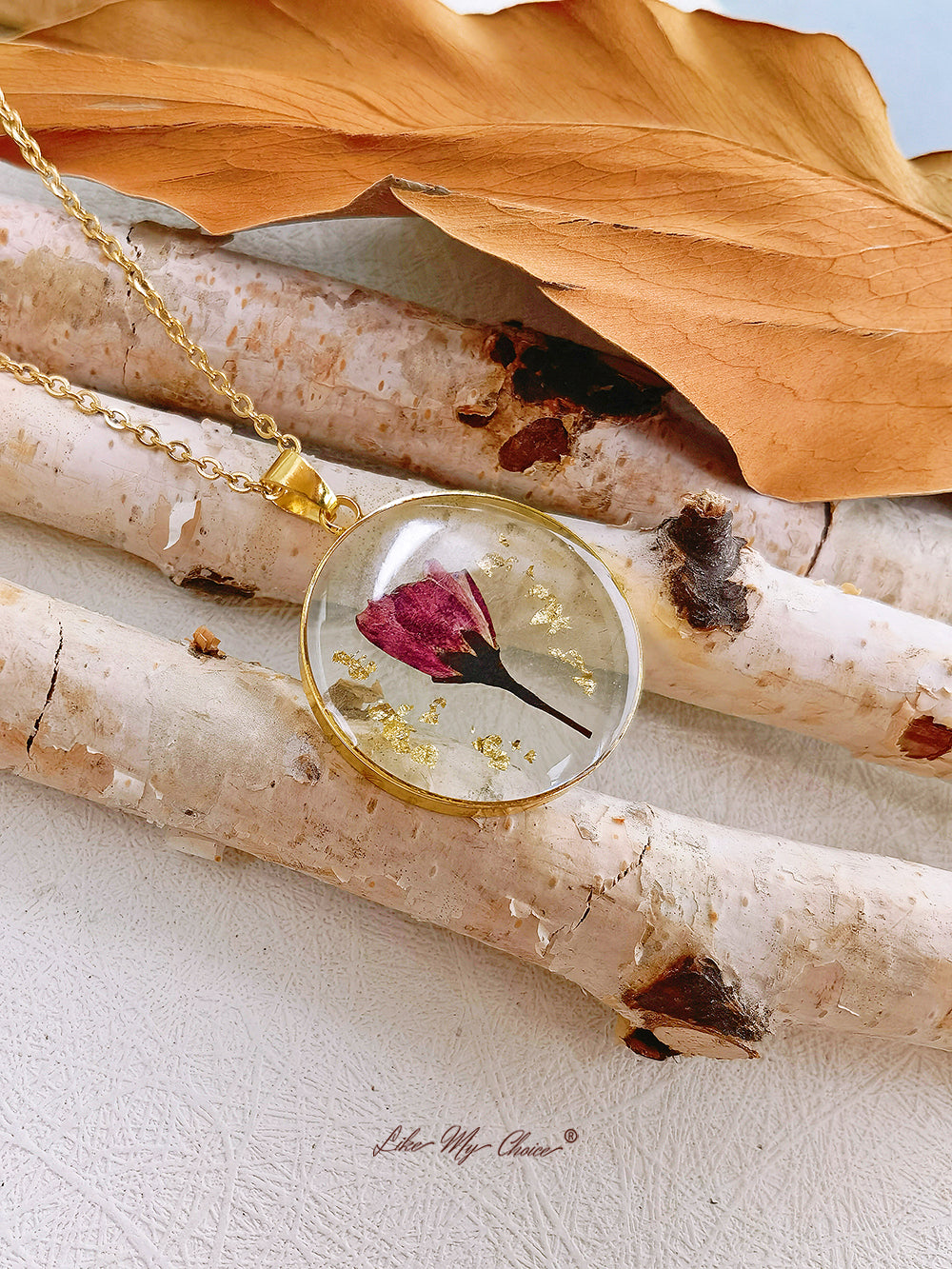 Add a touch of vintage charm to your jewelry collection with our Botanical Resin Flower Necklace. This necklace features a dried August rose encased in resin, creating a unique and stylish look that complements any outfit.