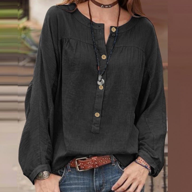Wisherryy Casual Loose Solid Color Button Shirt