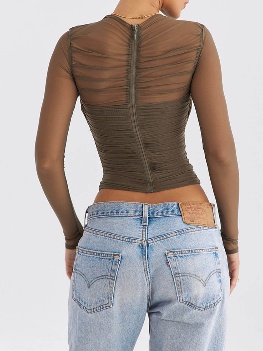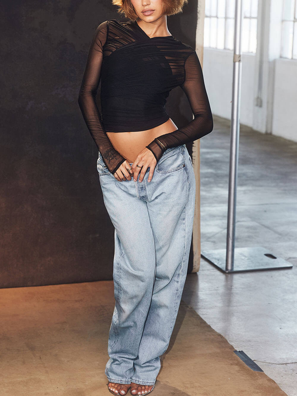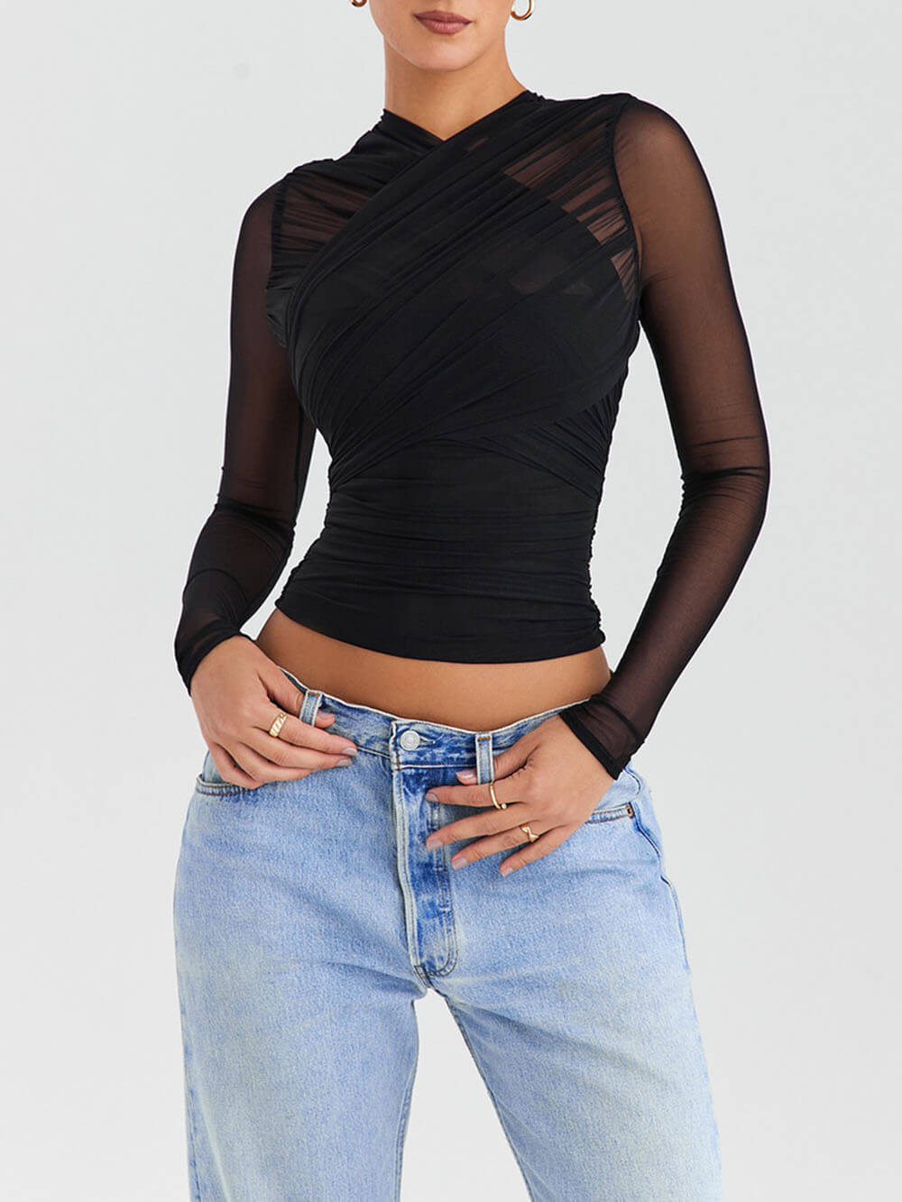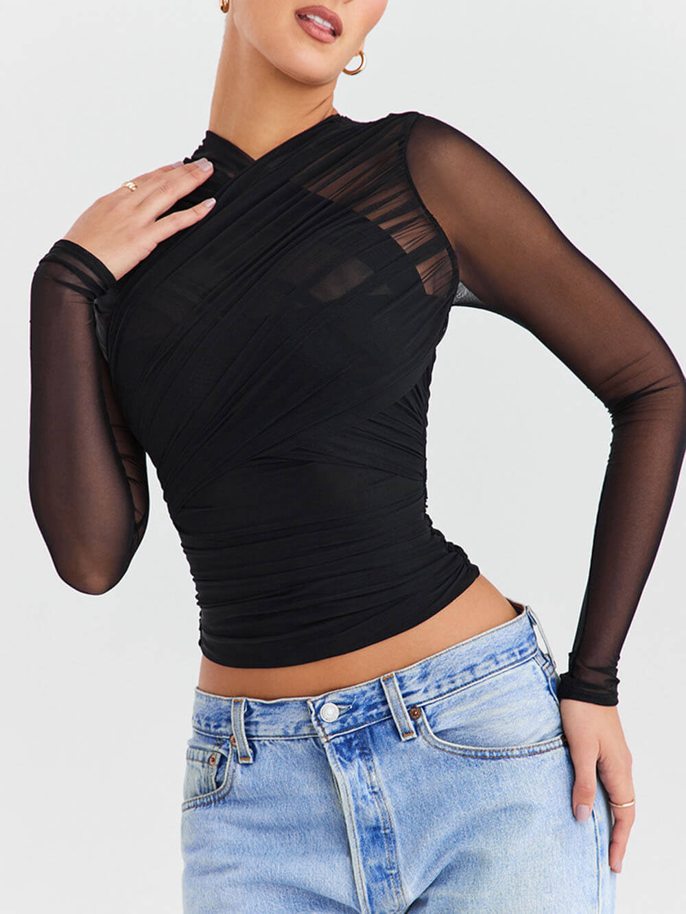 Sheer Elegance: The sheer mesh overlay adds a touch of sophistication to your outfit.