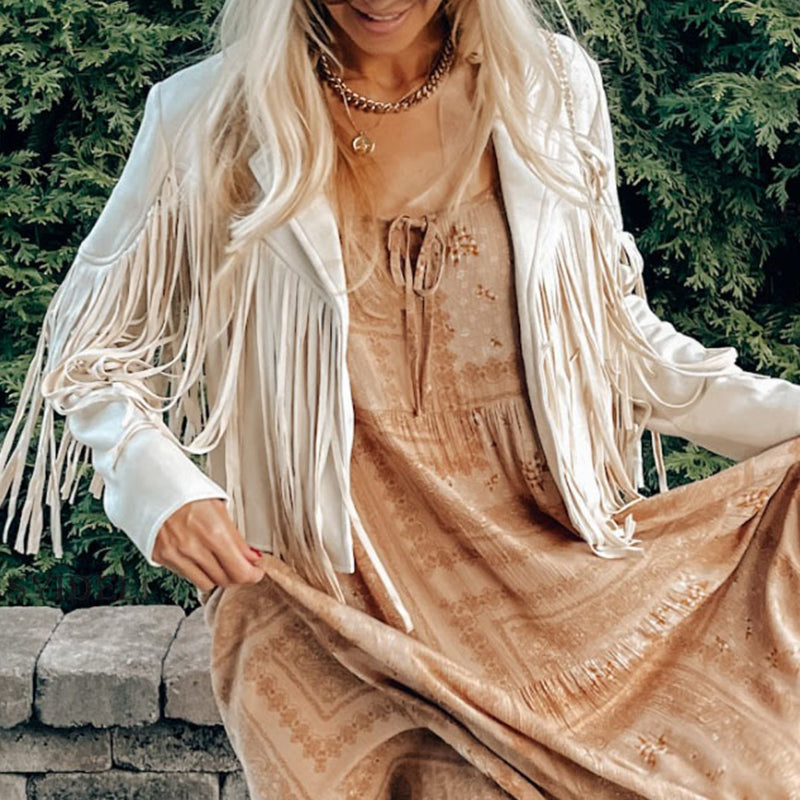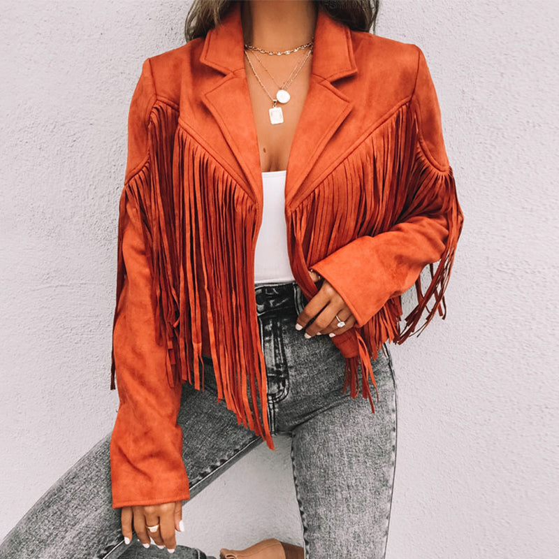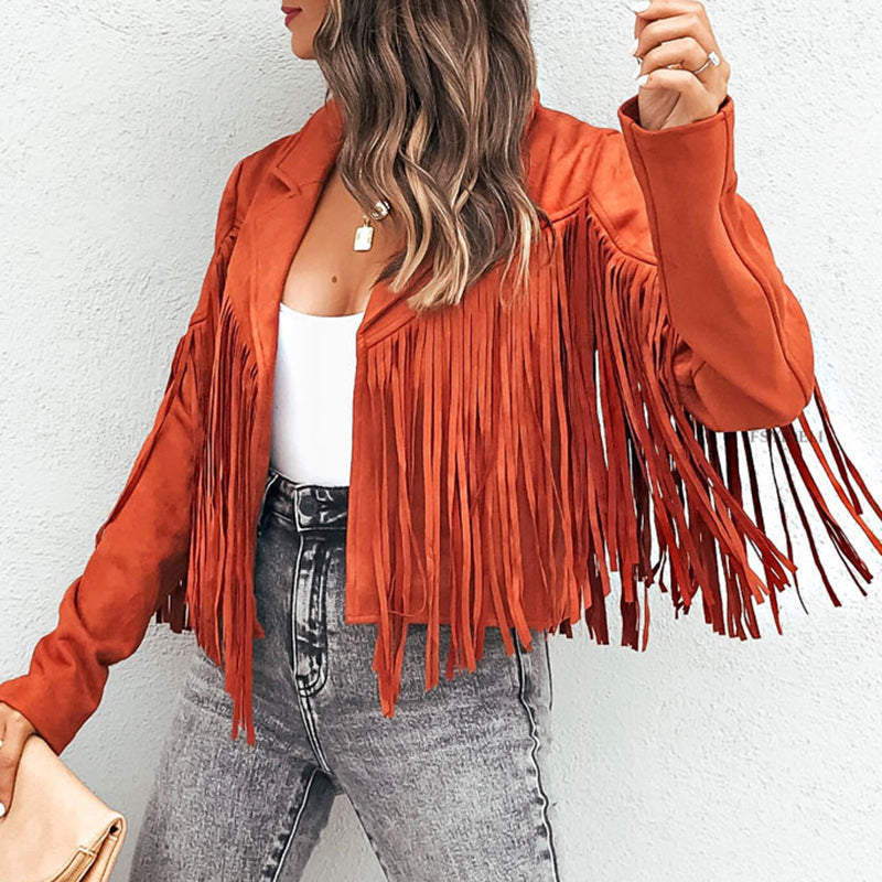 Oversized Solid Fringed Long Sleeve Jacket
